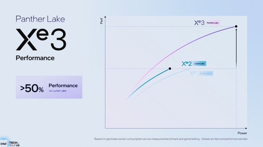 英特尔披露了 Panther Lake CPU 上的 Xe3 iGPU 的更多细节。其 游戏性能的游戏性能提升微乎其微,但正如我们在前几代产品中所看到的那样,它总会随着后续驱动程序的更新而得到改善。这一次,英特尔提供了两种规格的不明Arc iGPU:一种是4个EU,另一种是12个EU。也就是说 早些时候泄露的称至少有一个 SKU 带有 10 个 EU,因此很有可能为了稳定性而禁用了两个单元。