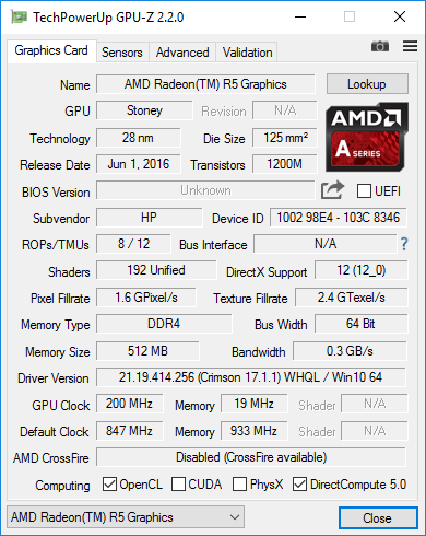 除此之外,Stoney Ridge A9处理器和Radeon 530显卡的搭配也并不相称。类似于我们之前测试的A12-9720P Pavilion 17z机型,我们的A9机型的整体性能受到了缓慢的处理器的拖累。根据游戏不同,运行的帧率可以时而超出高清显卡620达80%,或时而低达只有它的五分之一,而高功耗、短电池续航和很吵的风扇都是需要付出的代价。一台功耗高达GeForce GTX 950M水平的显卡,却只能提供较老的英特尔Iris或高清显卡水平的性能,让人十分难以接受。