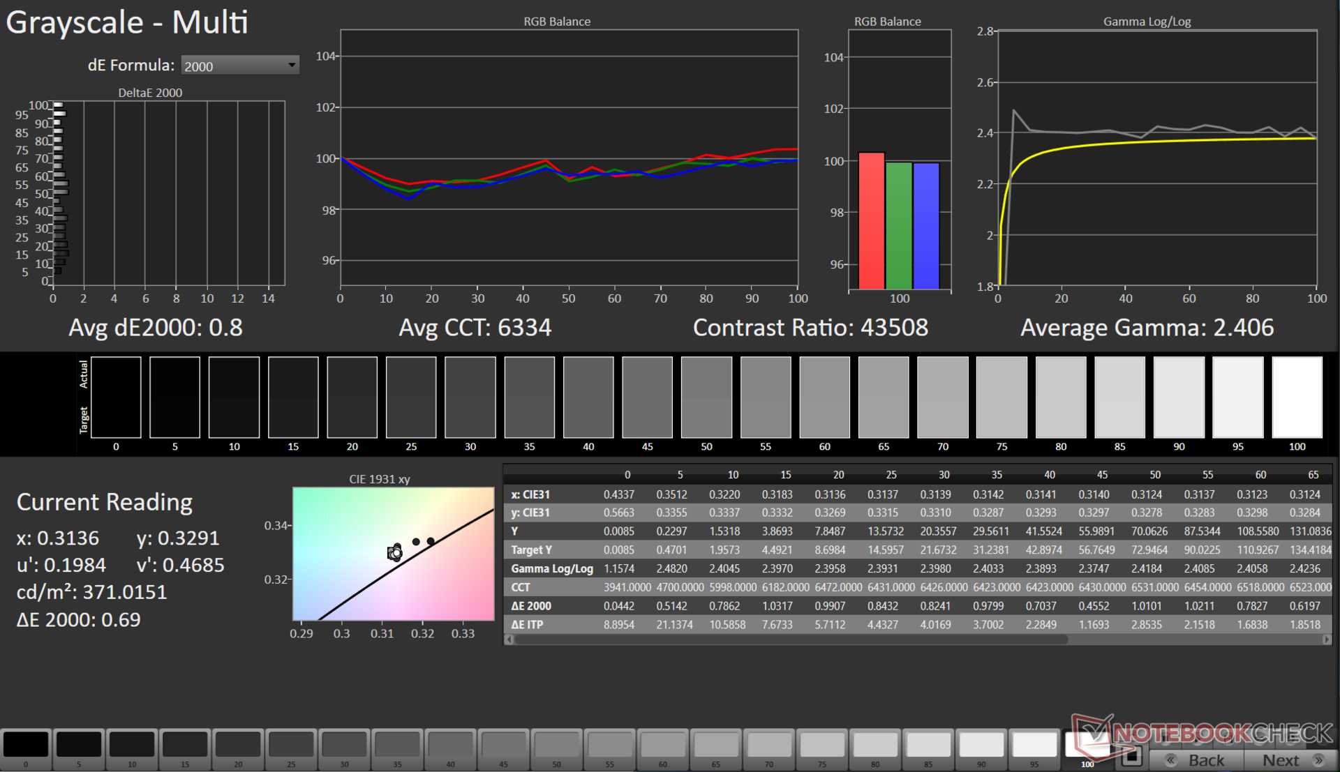 ΔE Greyscale Calman: 2.3 | ∀{0.09-98 Ø5}
