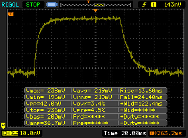 | 25 ms ... rise ↗ and fall ↘ combined | ↗ 6 ms rise | |