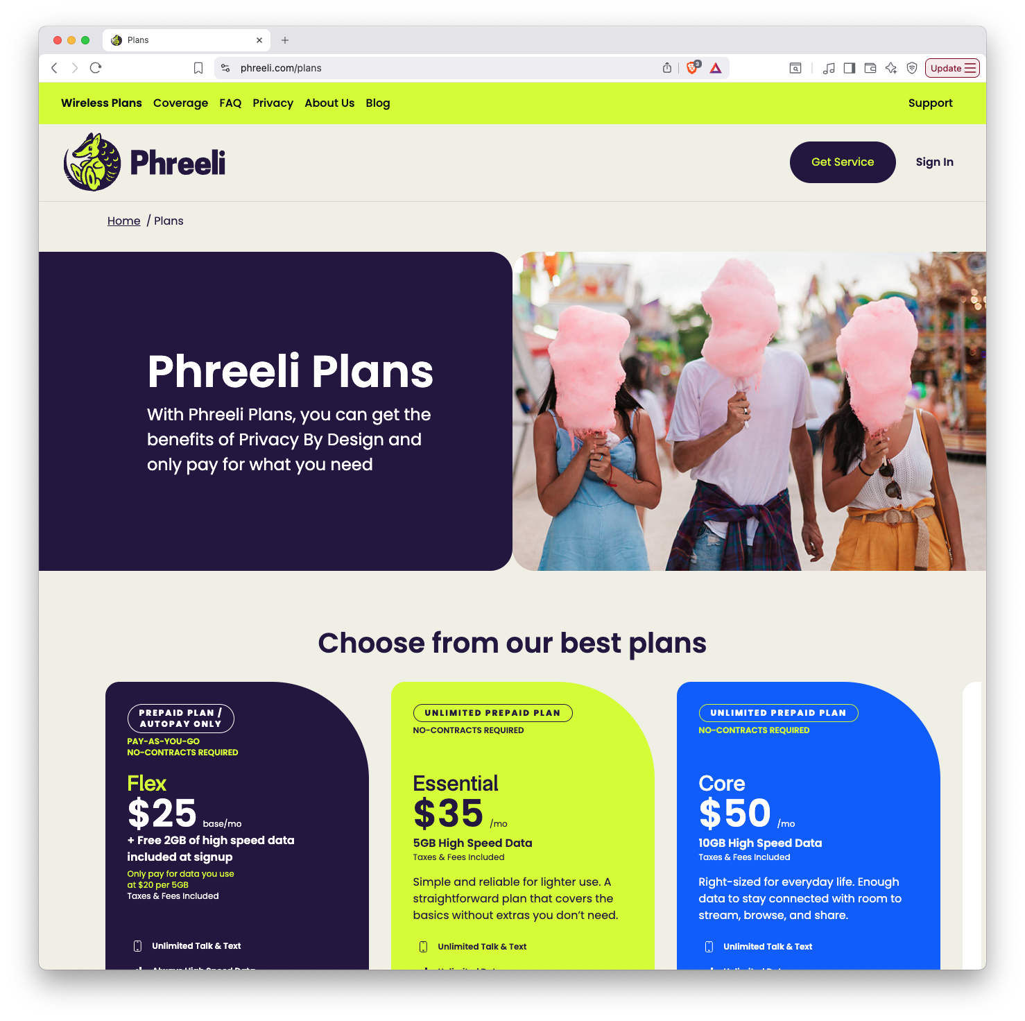 目前,Phreeli 提供五种计划,所有计划都提供无限通话、短信、数据和热点数据,区别仅在于分配的 "高速 "数据量不同。他们最便宜的计划是预付费计划,每月 25 美元起,用户每 5 GB 数据支付 20 美元;另一端是 "Max "计划,每月 85 美元,提供 65 GB 高速数据。所有计划还提供 90 多个国家的无限国际通话和短信服务,以及同样强大的隐私协议。