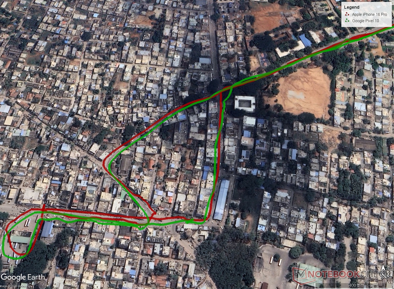 Pixel 10 的导航性能与 Apple iPhone 16 Pro,无论是在路上还是在密集的住宅区。