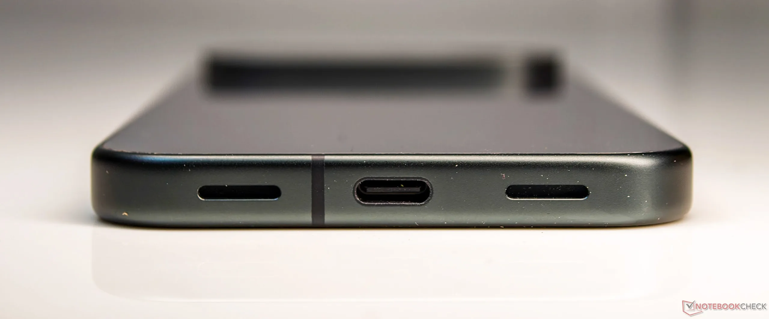 扬声器被放置在 USB 3.2 Type-C 接口的右侧,这样在横向握持手机时就不会被挡住。