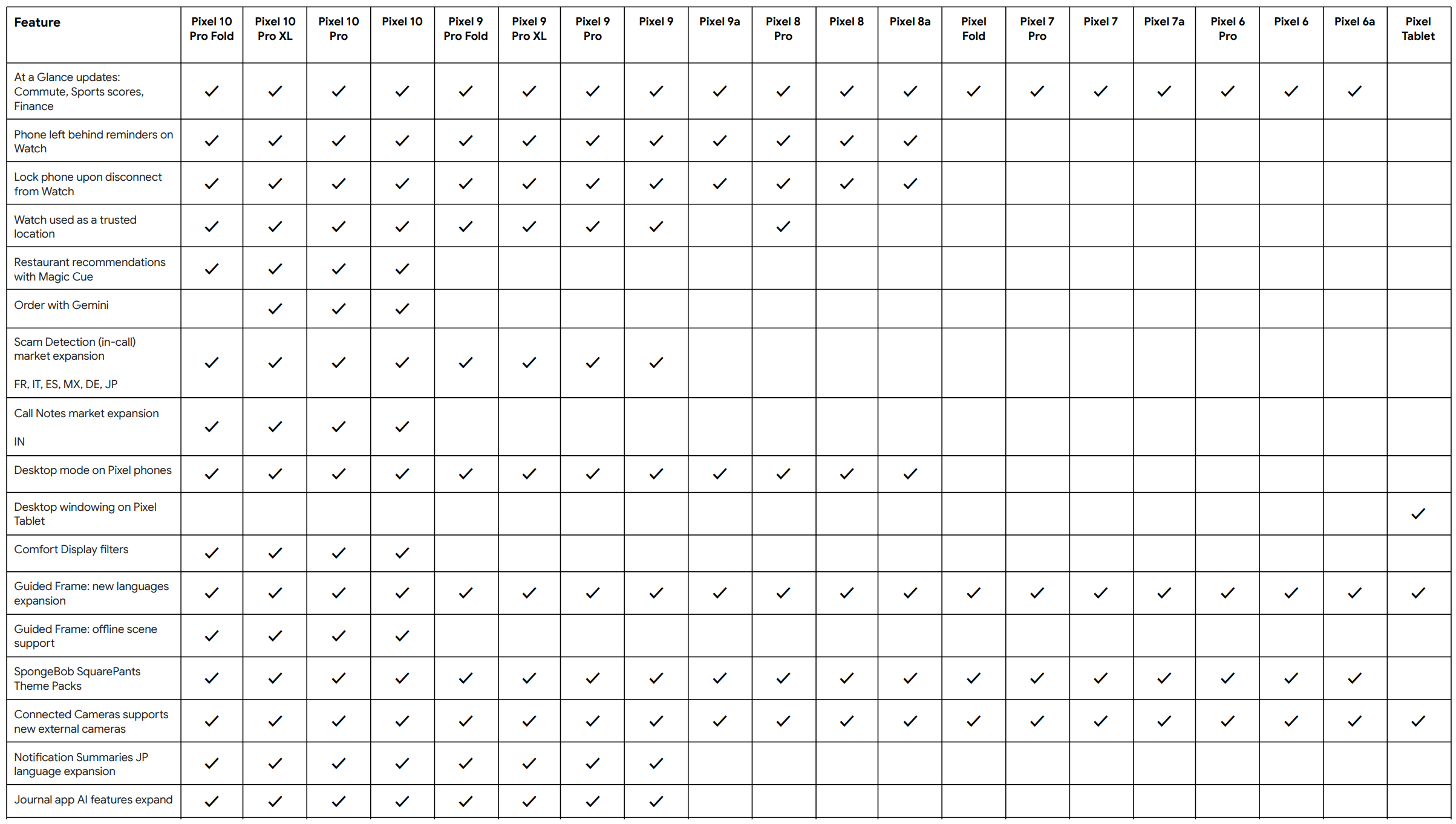顺便提一下,桌面窗口功能现在也已经应用到了 Pixel 平板电脑上。此外,谷歌还将来电诈骗检测功能扩展到了德国、法国、意大利、日本、墨西哥和西班牙。有关哪些新功能将在本月晚些时候登陆哪些设备的更多详情,请参阅下表。