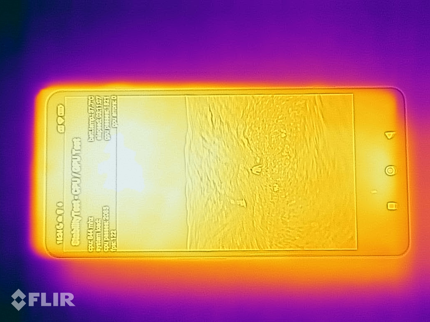 (+) The maximum temperature on the upper side is 37.1 °C / 99 F, compared to the average of 35.2 °C / 95 F, ranging from 21.9 to 247 °C for the class Smartphone.