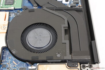 负载下的表面温度与我们在Precision 5550上记录的相似,顶部和底部的热点分别接近49℃和45℃。由于内部的对称冷却方案,温度的发展在很大程度上是对称的,因此键盘中心的温度会比掌托或边缘的温度高很多。该ThinkPad P15 Gen 2是一个比我们的Precision 5560更强大的移动工作站,但其热点会因此而变得更热,超过63℃。