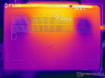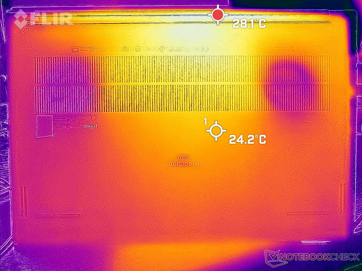 (+) The palmrests and touchpad are cooler than skin temperature with a maximum of 27.6 °C / 81.7 F and are therefore cool to the touch.