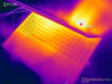 (+) The palmrests and touchpad are reaching skin temperature as a maximum (34.2 °C / 93.6 F) and are therefore not hot.