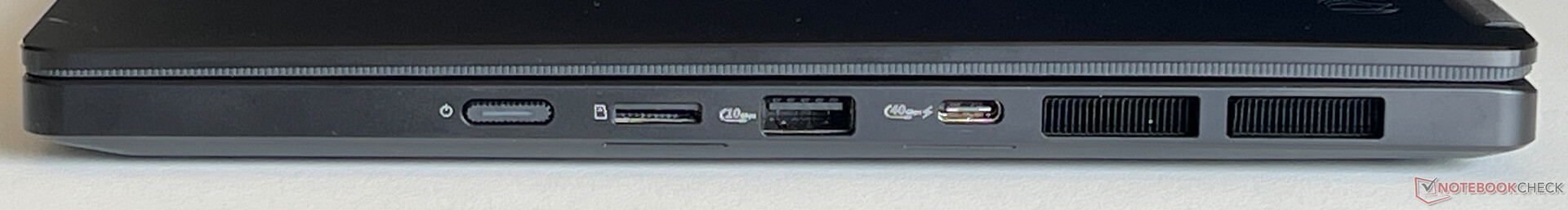 由于整个机身后部和两侧的后部区域都用于散热,因此接口位于两侧的中间位置。端口选择本身就非常合理,因为除了 2x USB-C 4.0 外,还有一个普通和一个快速 USB-A。此外,还有 HDMI 和 microSD 读卡器。设备可在两侧充电。