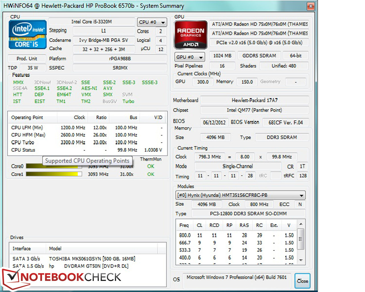 强大的双核CPU在一个恒定的基本时钟速度为2.6 GHz,而最大时钟速度上升到3.3 GHz可靠睿频加速被激活的结果。在95和总理的Furmark充分利用CPU和GPU同时我们的压力测试,没有任何限制了整整一个小时后观察到的。此外,当执行渲染任务,在CINEBENCH R10的CPU,该处理器充分利用其加工储备保持一致。正如预期的那样审查的笔记本电脑的性能证明了自己是没有任何明显异常。相比其他设备使用相同的处理器,如富士通Lifebook P772的戴尔Latitude E6230例如,执行同样的ProBook6570b的平均水平。