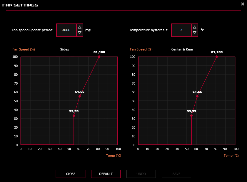压力测试 | 功率目标 | VBIOS 模式 | 最大。风扇转速(RPM) | 风扇噪音 dB(A) |