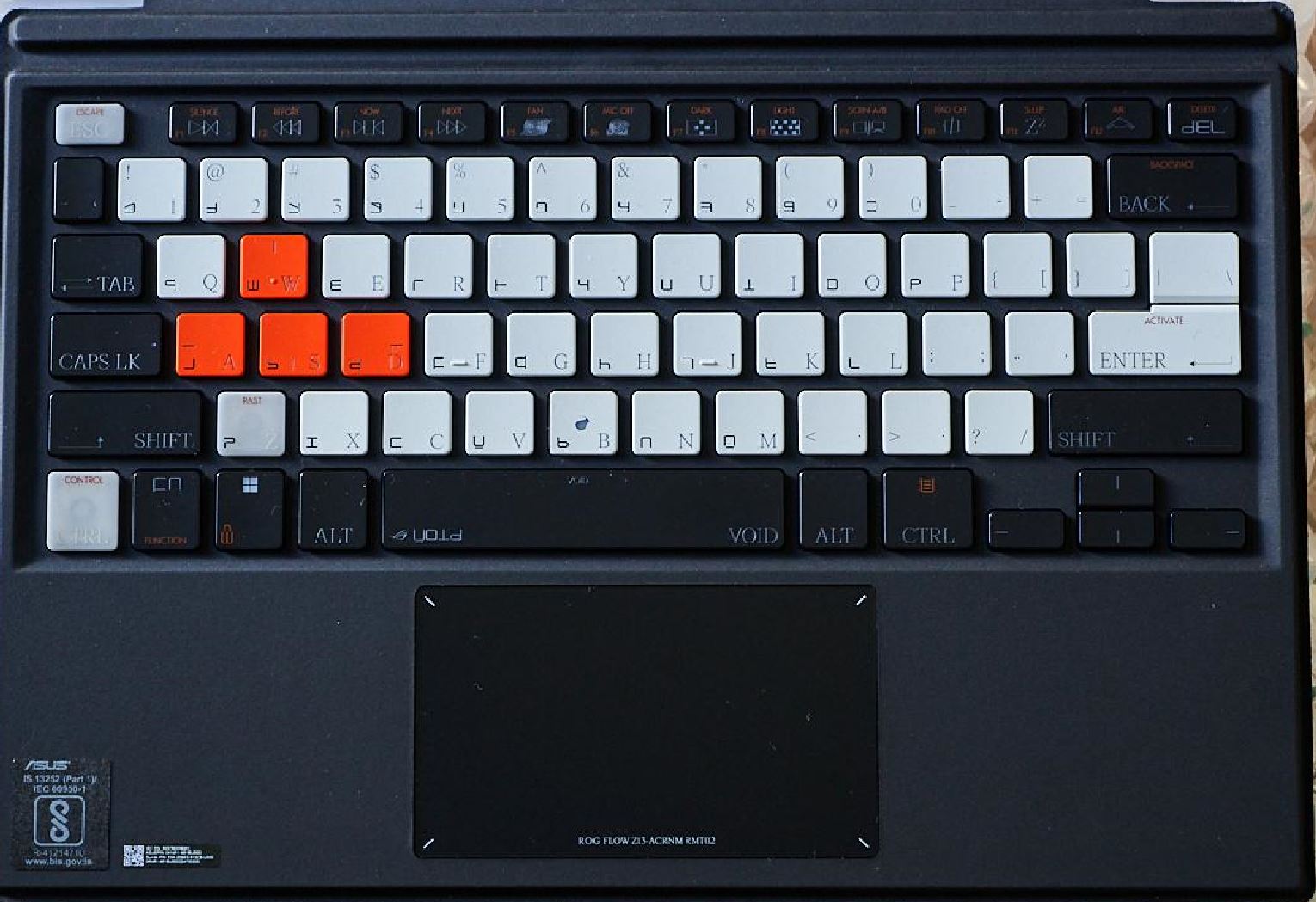ACRNM版的键盘盖也不同于普通的ROG Flow Z13而且你甚至可以得到两种不同的型号。不过你必须区分到方面。两种键盘盖都比普通版厚一些,这对稳定性有好处,到目前为止,我们从未评测过打字体验这么好的可拆卸键盘。另一方面,字体和对比度(或缺乏对比度)是一场灾难,设计显然比人体工程学更重要。如果你不盲目地打字,这将是一个问题。
