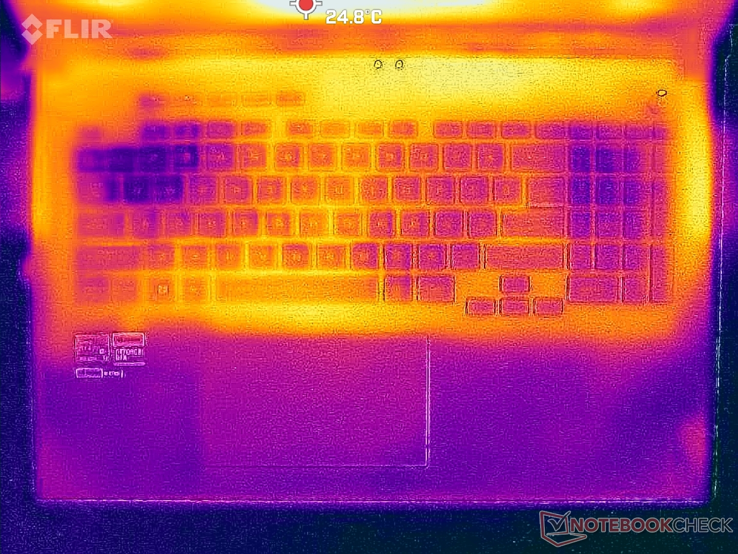 (+) The palmrests and touchpad are cooler than skin temperature with a maximum of 20.8 °C / 69.4 F and are therefore cool to the touch.