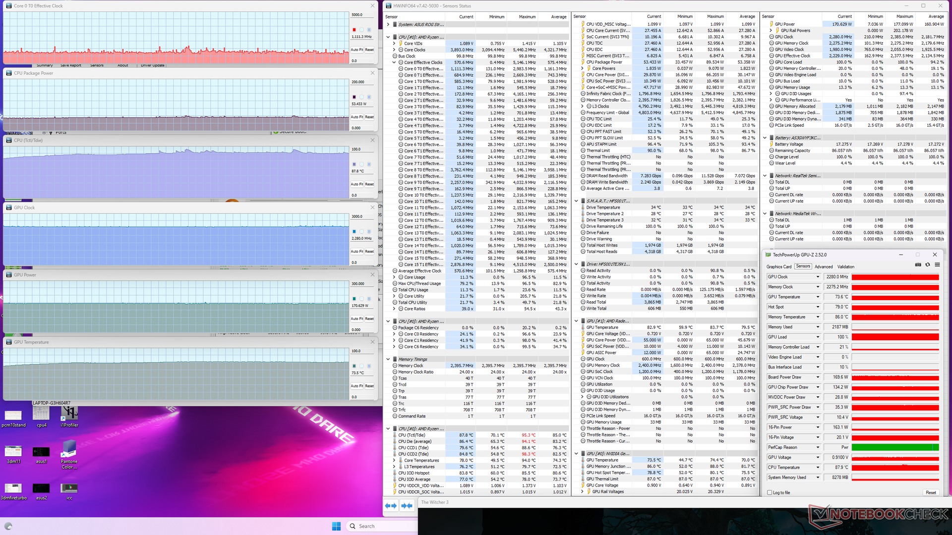 | 88.3 % v7 (old) | 04 / 2023 | Asus ROG Strix Scar 17 G733PY-XS96 R9 7945HX, GeForce RTX 4090 Laptop GPU | 2.9 kg | 28.3 mm | 17.30" | 2560x1440 | |
