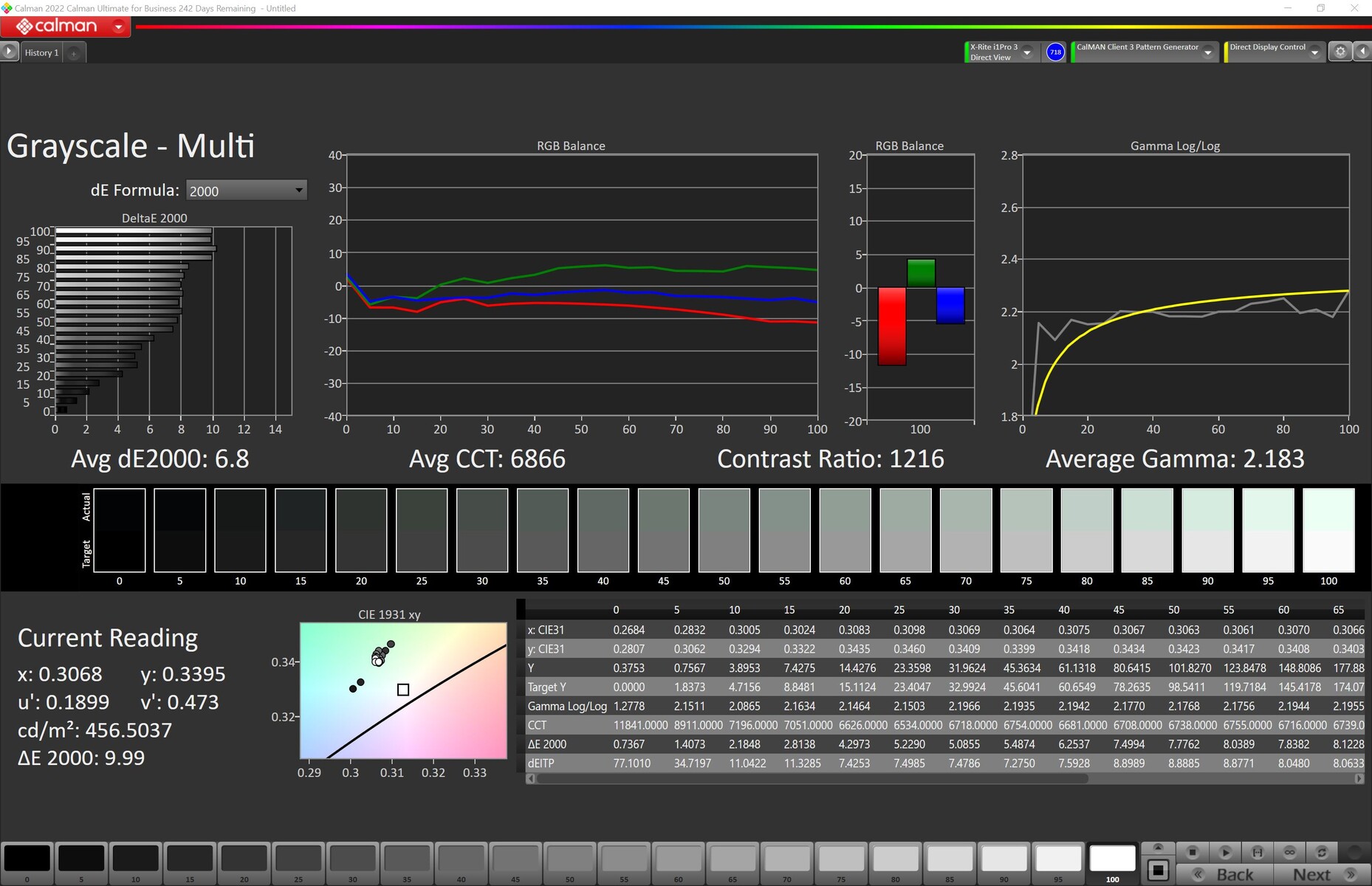 | Greyscale dE 2000 * | 7.2 | 2 72% | 6.5 10% | 1.1 85% |