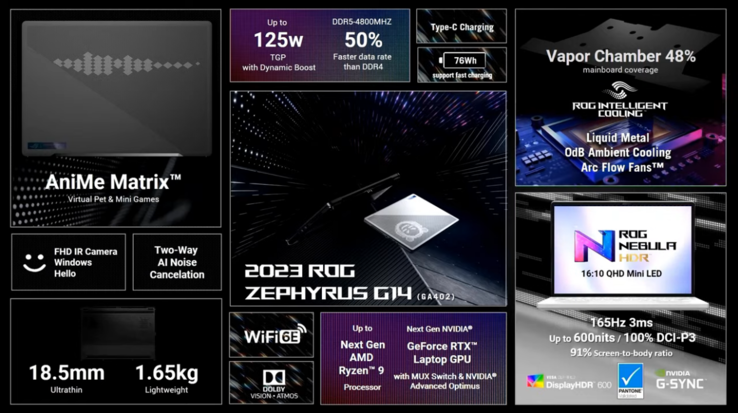 可以说,今年ROG Zepyhrus G14的最大卖点是其 nvidiaGeForce rtx 4090和AMD Ryzen 9 Zen 4 APU组合。虽然华硕还没有提供关于这个硬件组合的所有细节,但前者有16GB的GDDR6内存和125W的TGP wiyh Dynamic Boost。华硕没有确认ROG Zephyrus G14(2023)何时上市,也没有确认价格。然而,这款笔记本电脑将从1.65公斤和312 x 227 x 18.5毫米开始,但将上升到1.72公斤和312 x 227 x 19.5毫米,配备AniMe Matrix和Mini LED面板。