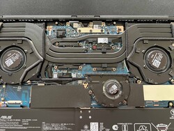 另一方面,AMD 型号充其量只能购买GeForce RTX 4070 笔记本电脑,而且你还得放弃蒸汽室冷却和更快的 GPU。这就引出了 AMD-G16 的最大弱点,即风扇。在日常使用过程中,第三个系统风扇的高转速尤其恼人,你几乎不得不使用静音模式,以确保即使在笔记本空转时也能关闭风扇。这让我们大吃一惊,因为华硕本应通过 BIOS 更新和 ProArt P16和 ProArt P16 的构造完全相同,因此不存在这个问题。