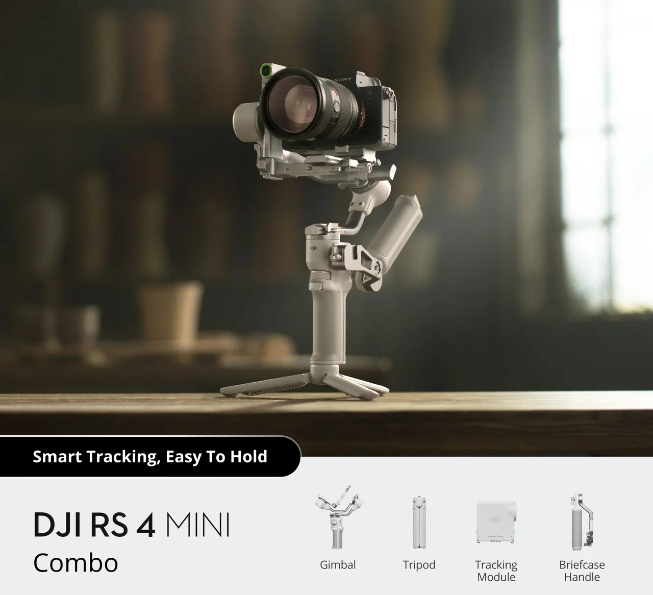RS 4 Mini 还支持大疆创新的第四代稳定技术,并配备了磁性快速释放支架解决方案。新的 RS 智能跟踪模块是展会上的另一颗明星,大疆将其限制在 RS 4 Mini Combo 套装中。据大疆称,由于采用了 ActiveTrack 技术,该跟踪模块可在 10 米外跟踪拍摄对象。该模块将这一功能与手势支持以及传统的按键控制相结合。