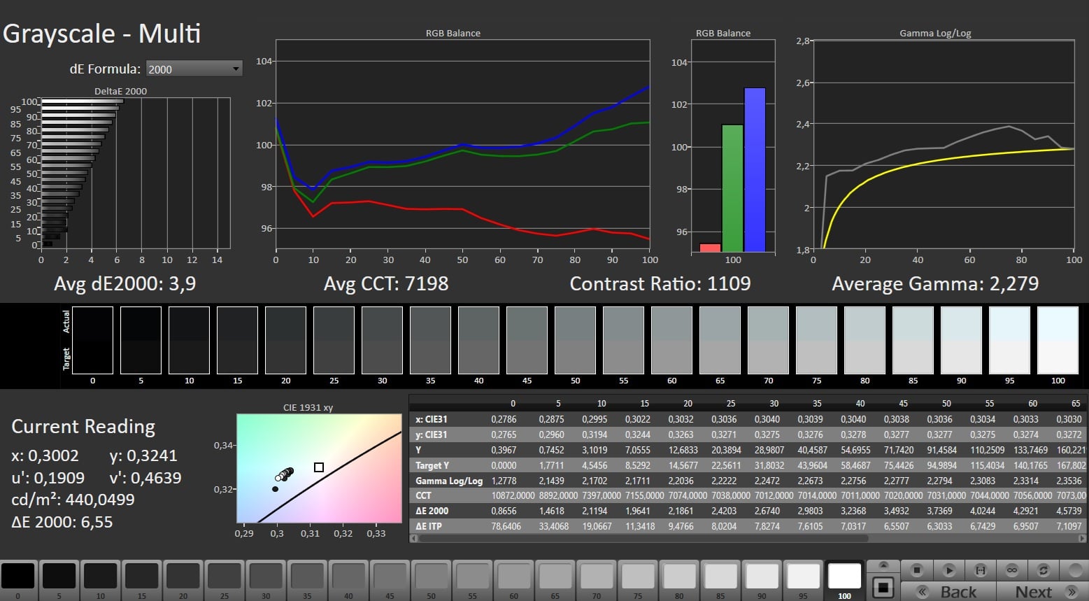 ΔE Greyscale Calman: 3.9 | ∀{0.09-98 Ø5}