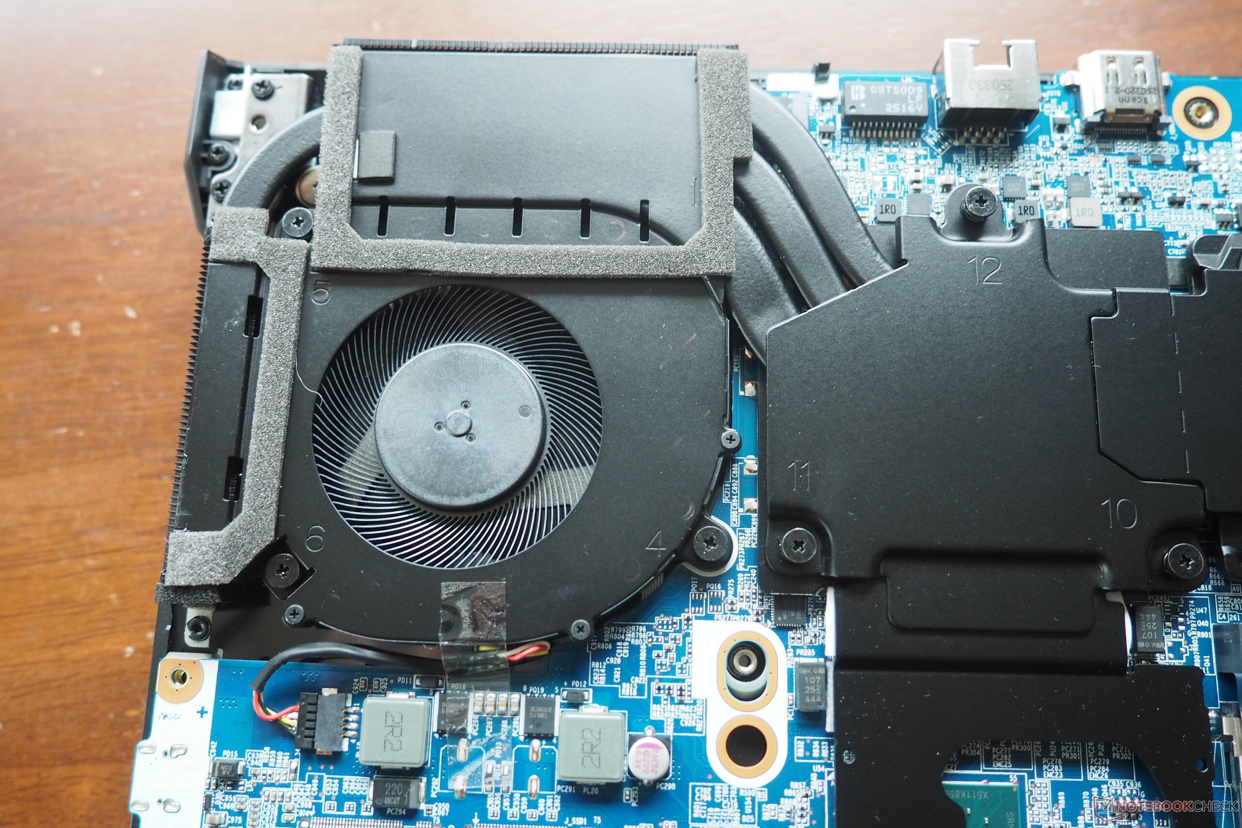 在撬开底盖之前,总共需要卸下 12 颗十字螺丝。在机盖下,你会发现一个带有两个风扇的冷却系统,以及两个内存插槽和两个固态硬盘插槽。电池也可以从这里取出。