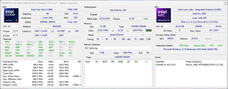 | Acer Predator Triton 14 AI PT14-52 Intel Core Ultra 9 288V ⎘ NVIDIA GeForce RTX 5070 Laptop ⎘ 32 GB Memory, 1024 GB SSD | List Price: 2999€ | 1.6 kg | 17.31 mm | 14.50" 2880x1800 234 PPI OLED | |