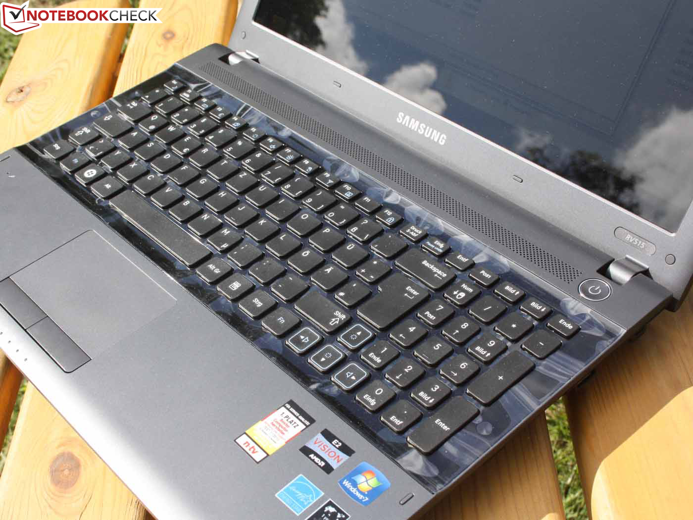 The workmanship of Samsung's RV515 is equal to the prior RV511, which is not a positive rating in this case. The rigidness does not satisfy us. We can warp the base unit with both hands and provoke an obvious creaking noise. The plastic base plate can be dented on its left and right. Particularly the DVD drive is a weak point.