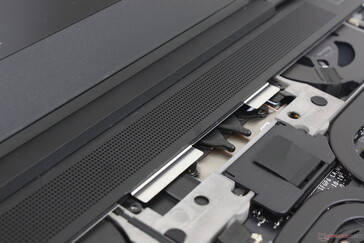 由于采用金属机身和慵懒的风扇,表面温度总是很高。当运行要求较高的负载(如游戏)时,笔记本底座上下两侧的热点温度可达 40 摄氏度以上。发热点更靠近 Laptop 16 的中心,而其他大多数笔记本电脑的发热点一般都在后部。这意味着在使用过程中,你更容易注意到框架系统升温的现象,而与其他笔记本电脑相比,如 惠普 Spectre x360 16相比,惠普 Spectre x360 16 的掌托和正面区域往往更凉爽。即便如此,我们也从未发现 Laptop 16 的温度会让皮肤感到不舒服。