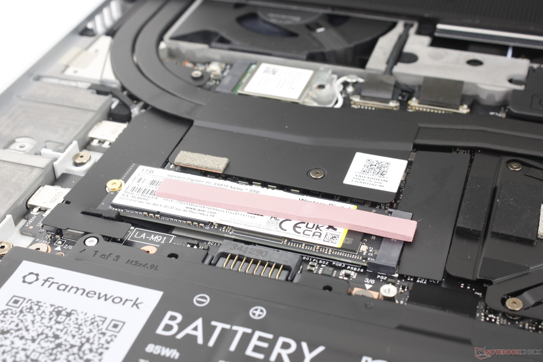 Laptop 16 采用了与 Laptop 13.5 相同的 MicroSD 扩展读卡器,读写速度相似。读卡速度仅为 80 MB/s,比同类机型的读卡器慢得多,如 ThinkPad Z16 Gen 2或 MacBook Pro 16 等竞争机型的读卡器要慢得多。