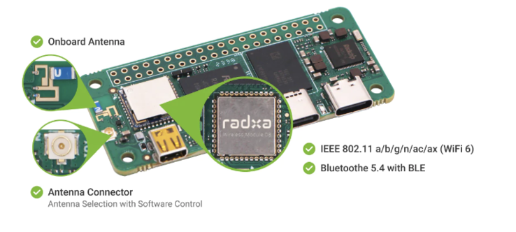 不过,Radxa 不再包括支持蓝牙和 Wi-Fi 4 的调制解调器。相反,该公司已将 Zero 3W 升级为 Radxa 无线模块 D8,可连接蓝牙 5.4 和 Wi-Fi 6(也称为 802.11 ax)。因此,SBC 通过蓝牙和 Wi-Fi 提供的传输速度应该比以前更快。