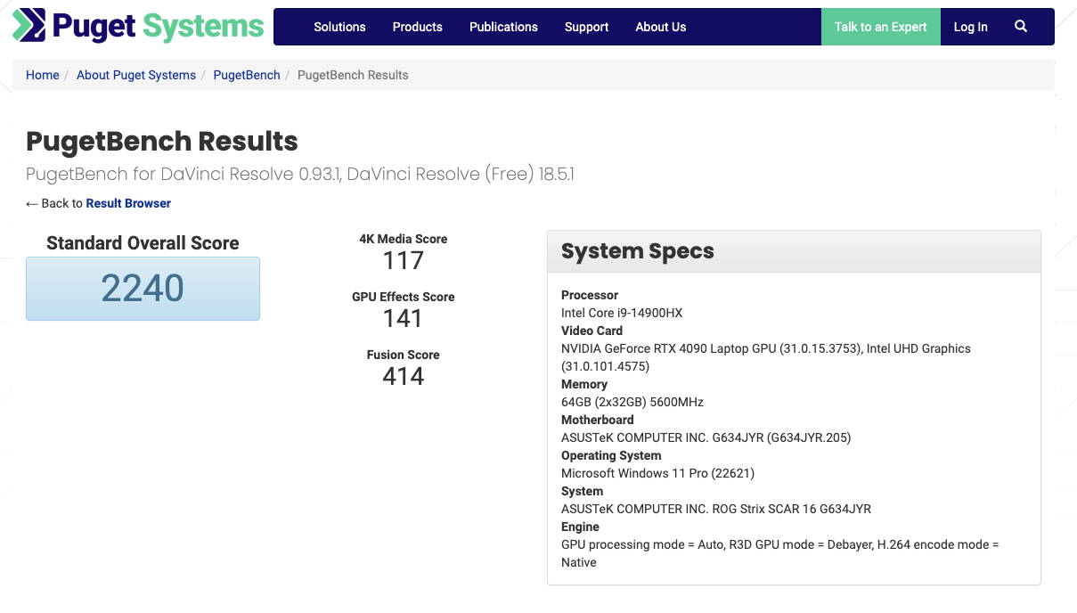 一如既往,PugetBench 没有透露酷睿 i9-14900HX 的任何规格。不过,该基准数据库概述了该处理器将在 ROG Strix SCAR 16 中使用,配备GeForce RTX 4090 GPU 和 64 GB 内存。令人惊讶的是,新款 ROG Strix SCAR 16 保留了与其前代产品相同的 "G634JYR "型号。