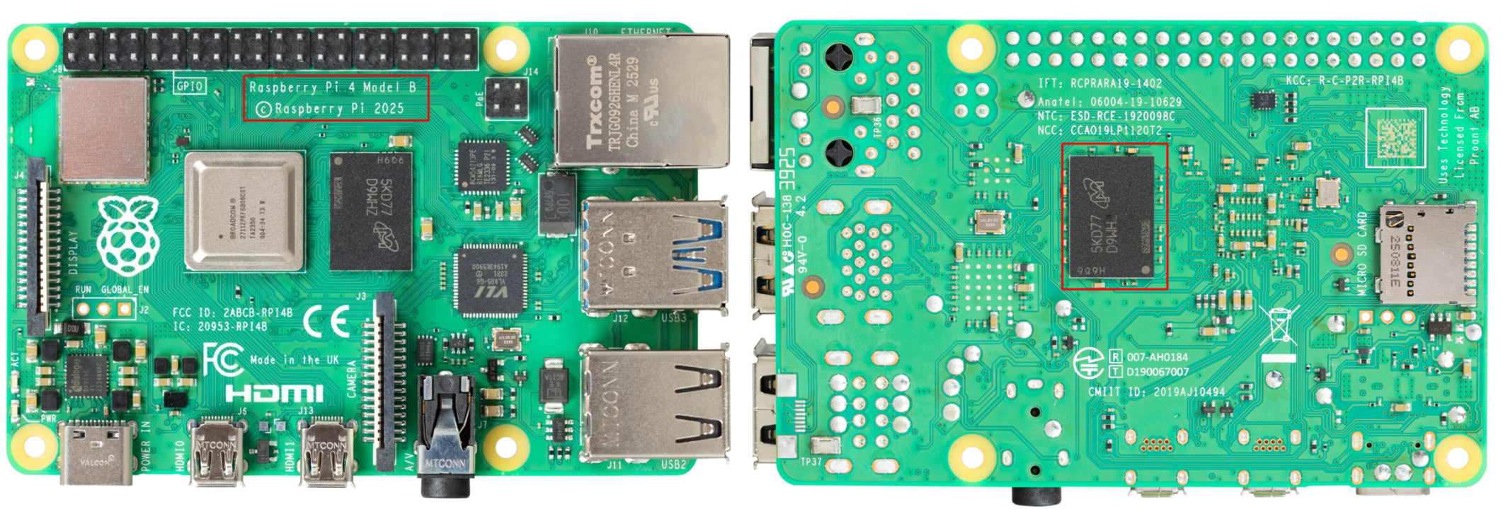 今年早些时候 Raspberry Pi 证实将重新推出Raspberry Pi 4 Model B(目前亚马逊售价 72.99 美元)的新版本。新版Raspberry Pi 4 Model B 被称为 "Rev 1.5 "电路板,它的底部有第二个 RAM 芯片,与现有版本有所区别。另一个标识是在 SBC 的顶部印有 "Raspberry Pi 2025 "字样。
