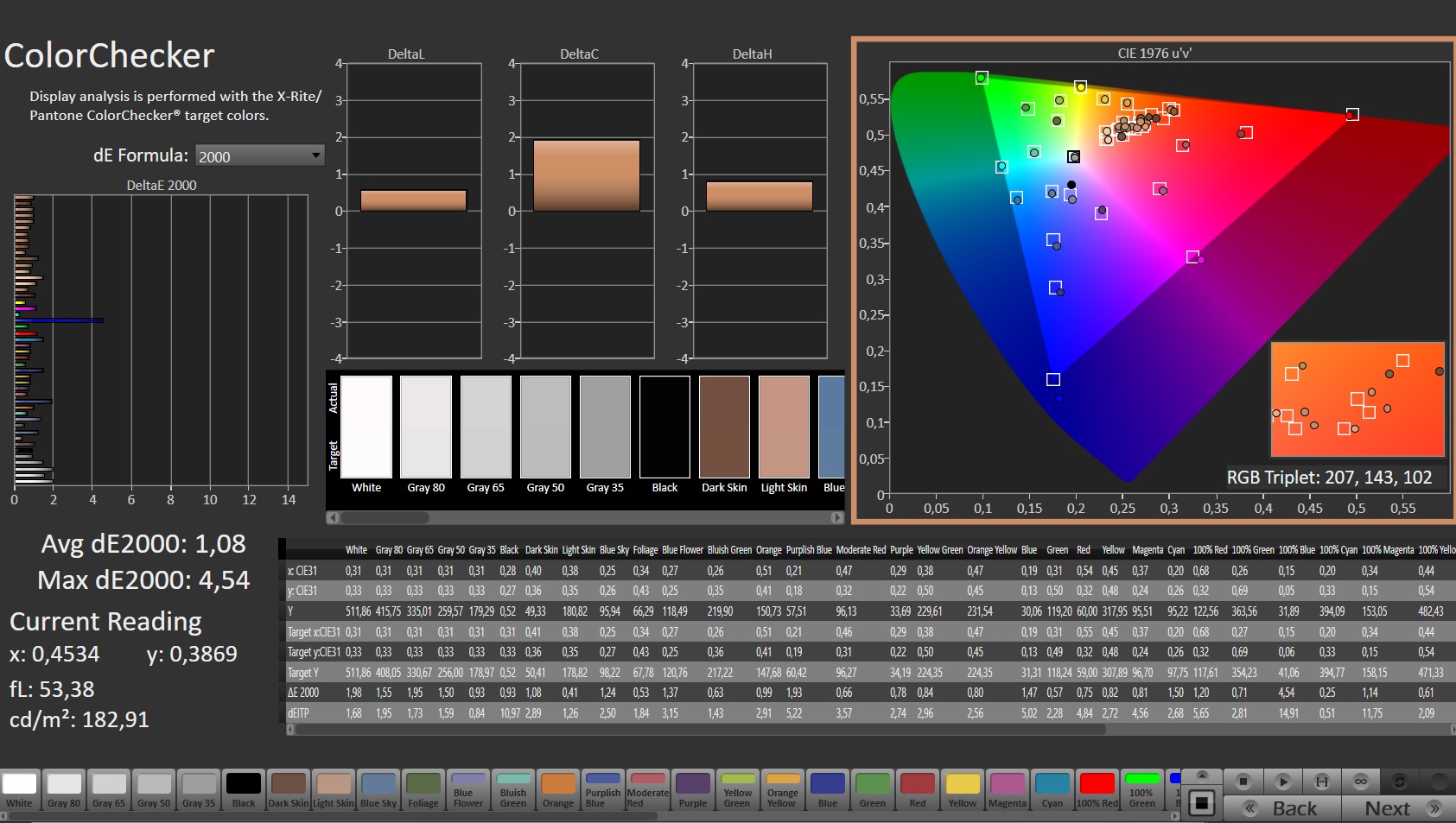 ΔE ColorChecker Calman: 1.08 | ∀{0.5-29.43 Ø4.78}