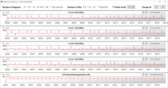 在日常操作中(办公室、互联网),机箱温度保持在绿色范围内。虽然笔记本电脑在负载下明显升温(压力测试,Witcher 3 测试),但热量发展仍然保持在可接受的范围内。 然而,CPU温度有时会达到红色范围。