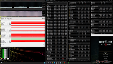 新机型比以前更耗电。仅仅在桌面上空转就会消耗30瓦到61瓦,这取决于亮度设置和电源配置文件,而2021年的Blade 17、微星GS76或华硕ROG Zephyrus S17的消耗量几乎只有一半。事实上,运行 Witcher 3将比2021年的Blade 17中的RTX 3070和Core i7-11800H的图形性能提升20%至25%,CPU性能提升25%。