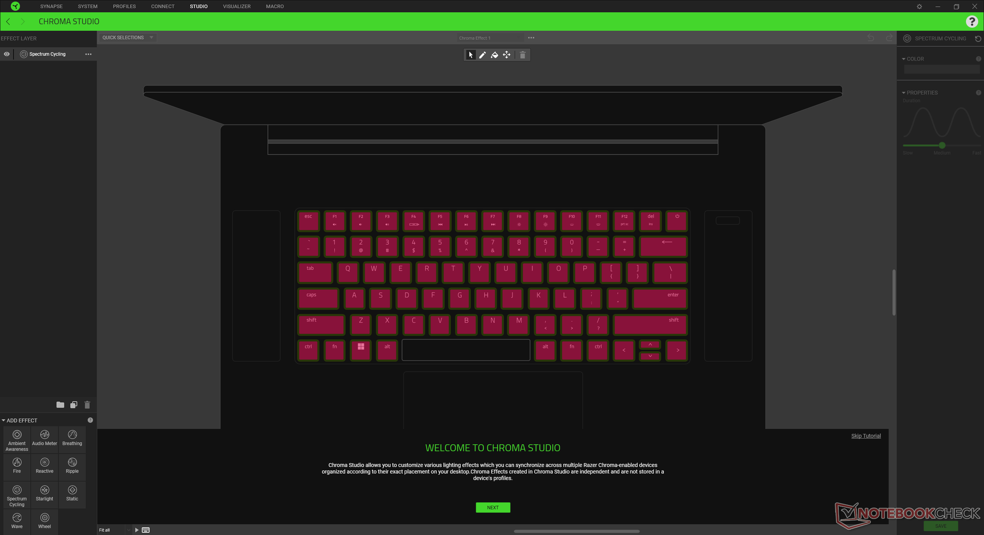 外部机箱与去年的型号相同,但有两个关键的视觉差异。首先,键盘的键帽现在比旧型号的大。其次,你现在只能通过设备底部的格栅看到三个风扇,而不是四个,因为雷蛇已经移除其中一个风扇。这些小变化对电池和整体温度有影响,我们的审查将显示。