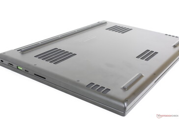 值得庆幸的是,更大的18英寸外形尺寸并不影响机箱的刚性。底座和盖子都和Blade 17一样坚固,给人以类似MacBook Pro的强烈印象。特别是铰链,尽管有大屏幕,但其最大角度仍远低于180度。笔记本电脑上最薄弱的地方可能是外盖的最中央,那里的表面更容易因施加压力而变形。
