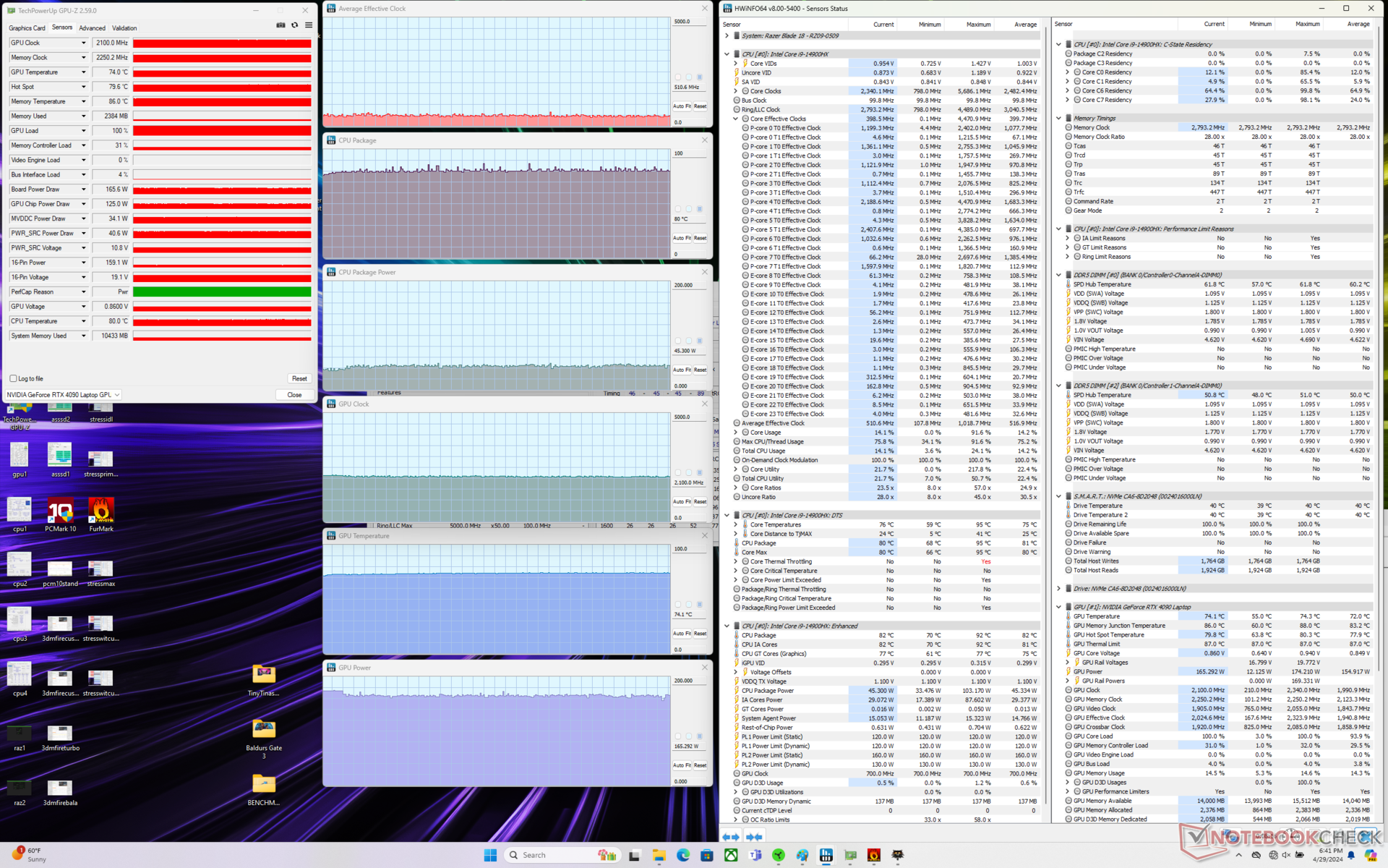 | 88.3 % v7 (old) | 02 / 2024 | Asus ROG Strix Scar 18 G834JYR (2024) i9-14900HX, GeForce RTX 4090 Laptop GPU | 3.1 kg | 30.8 mm | 18.00" | 2560x1600 | |