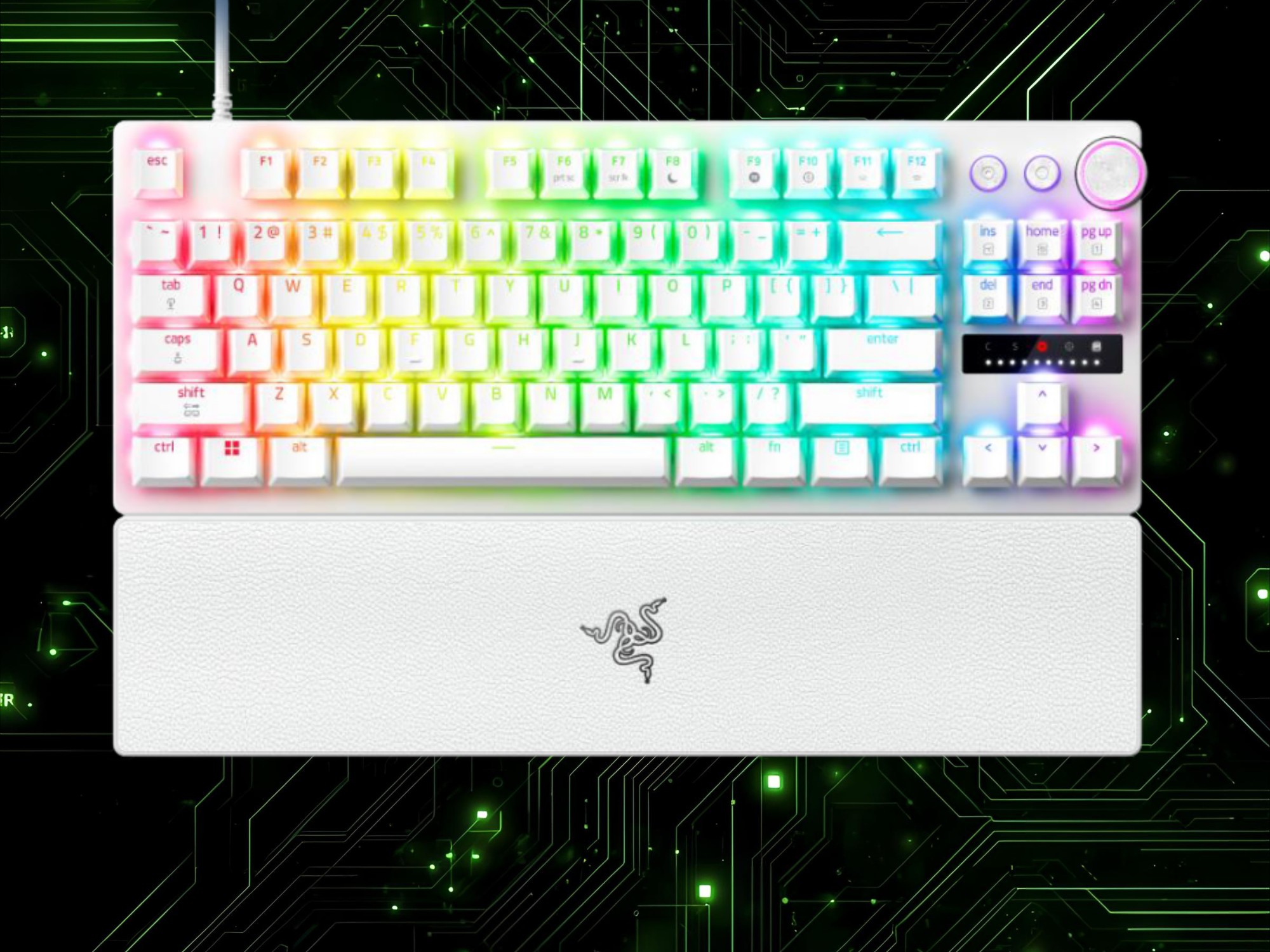 对 TKL 型号的实际测试表明,它能对轻触作出反应。不过,由于触动范围在 0.1 毫米到 4 毫米之间,更高的设置使其更适用于生产力任务。玩家还可以调整其他选项,如 快速点击和快速触发等其他选项,而不需要 同步 4.有线键盘的右侧设有可重新设置的媒体控制和多个 LED 指示灯。