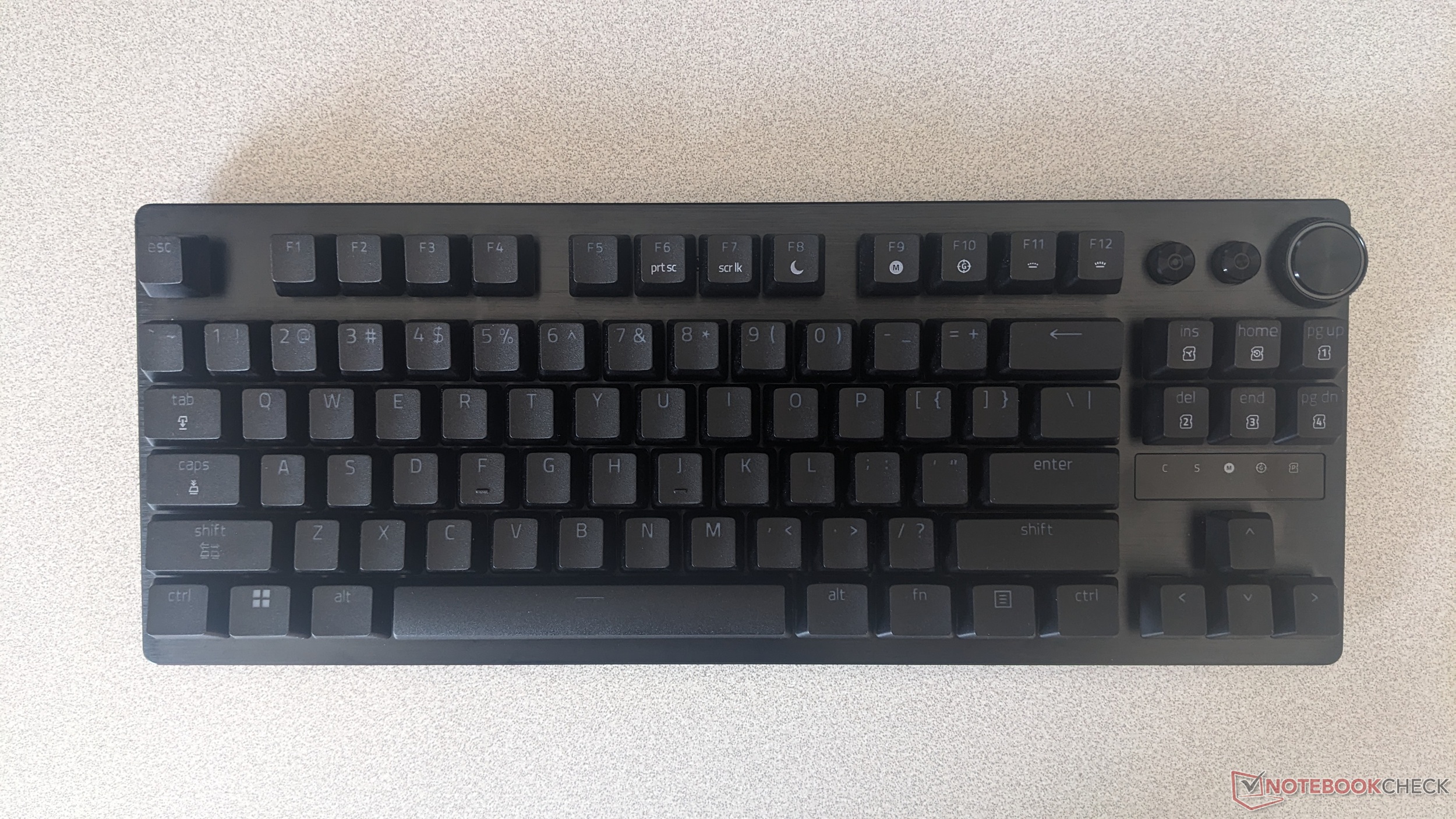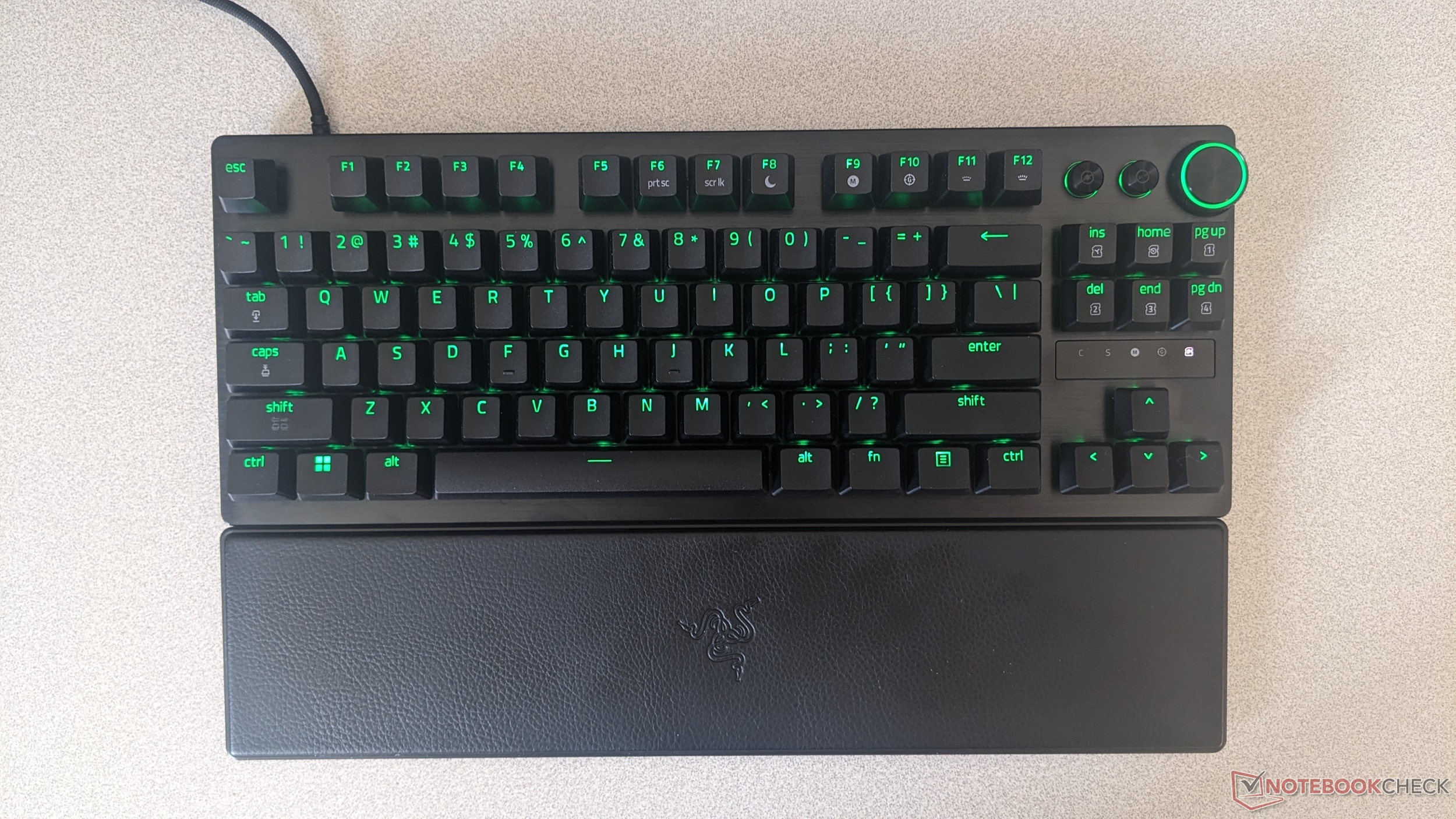 对于 Razer 来说,进一步创新是一项挑战。 Huntsman V3 Pro(由 Notebookcheck 评测在 2024 年进行的评测。尽管如此,Huntsman V3 Pro TKL 8KHz 还是通过渐进式变化增加了精确度和多功能性。