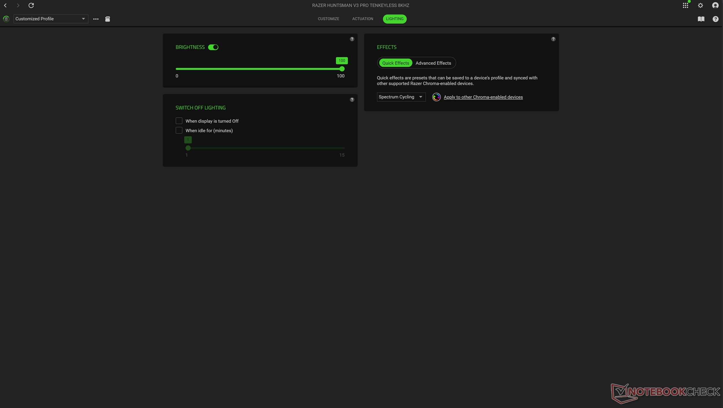 灯光选项基本保持不变,Synapse 主程序中提供了基本效果。要充分发挥按键照明的潜力,还需要一个单独的 Chroma Studio 界面。