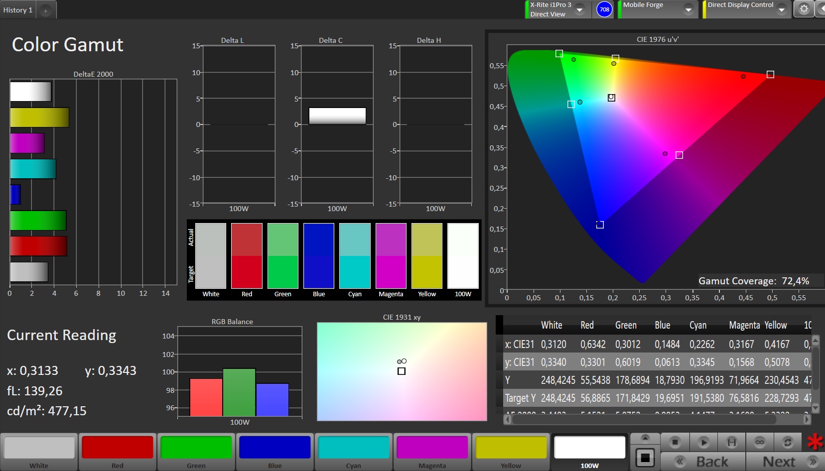 ΔE ColorChecker Calman: 1.72 | ∀{0.5-29.43 Ø4.78}