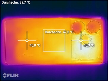 (-) The maximum temperature on the upper side is 47.8 °C / 118 F, compared to the average of 35.2 °C / 95 F, ranging from 21.9 to 247 °C for the class Smartphone.