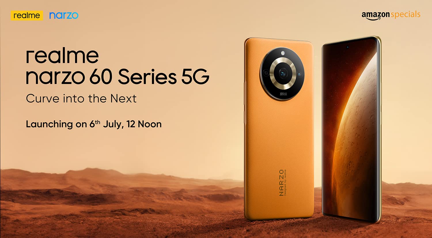 Realme还没有对新的智能手机进行更详细的预告,只是表示它们和11 Pro和Pro+一样,将拥有 弧形显示屏。Narzo 60系列5G"预计将于7月6日与N53一起在亚马逊。, 2023.