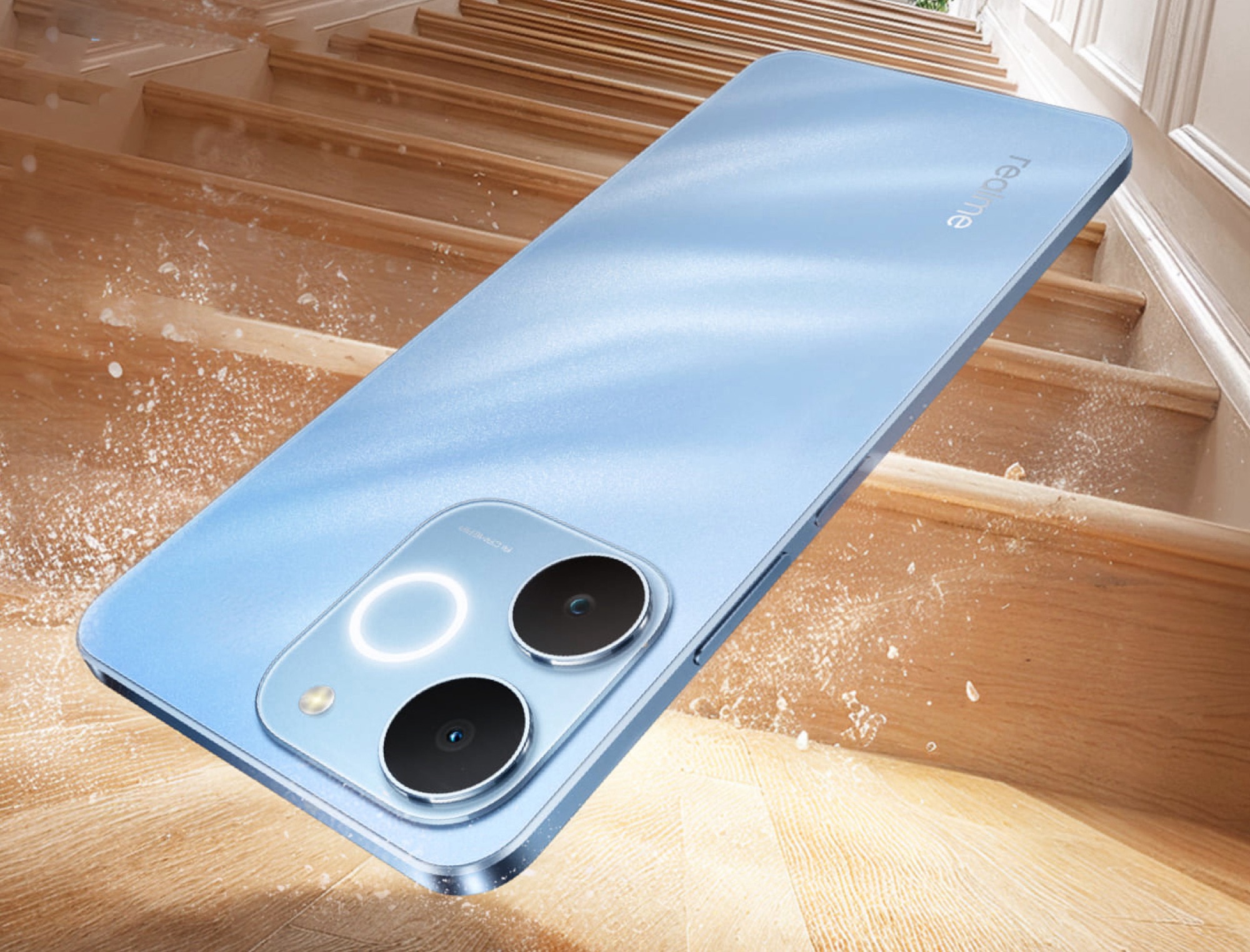 该设计唯一与众不同的地方是 "脉冲灯",这是摄像头模块上的一个环形 LED 灯,用于显示收到的通知。7.94 毫米厚、201 克重的外壳通过了 IP54 认证,这意味着它只能防溅。虽然这款中档智能手机比Apple iPhone 17 还要薄,但 Realme 却设法装上了一块大得多的 6,300 毫安时电池。