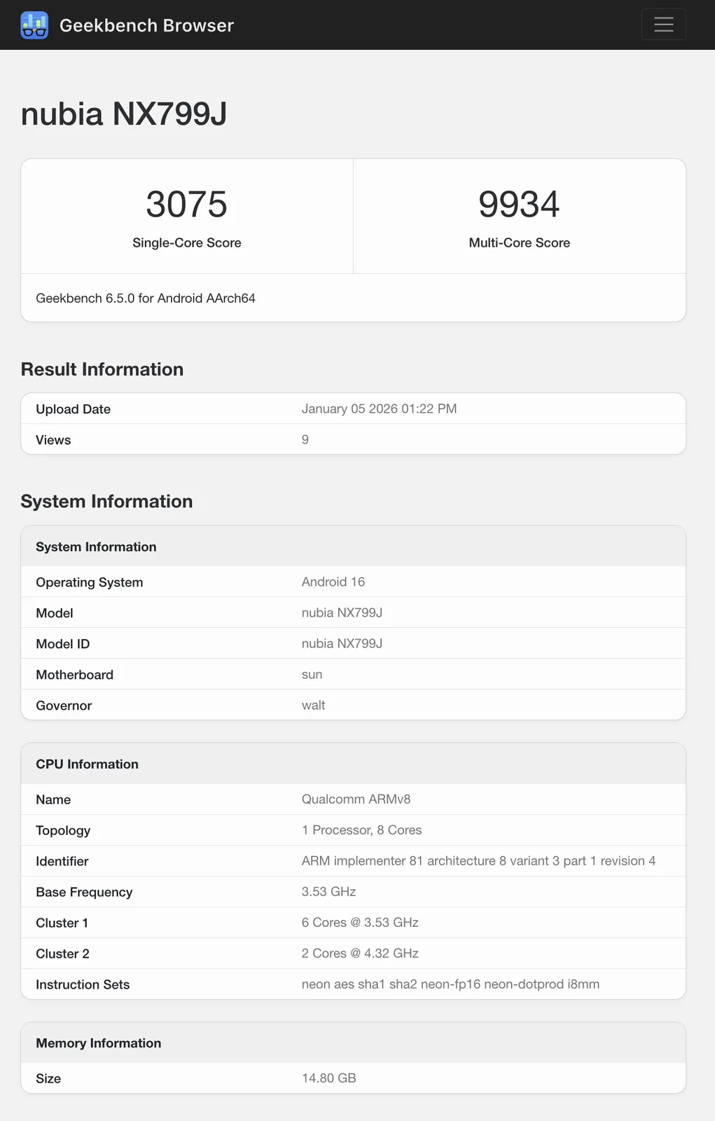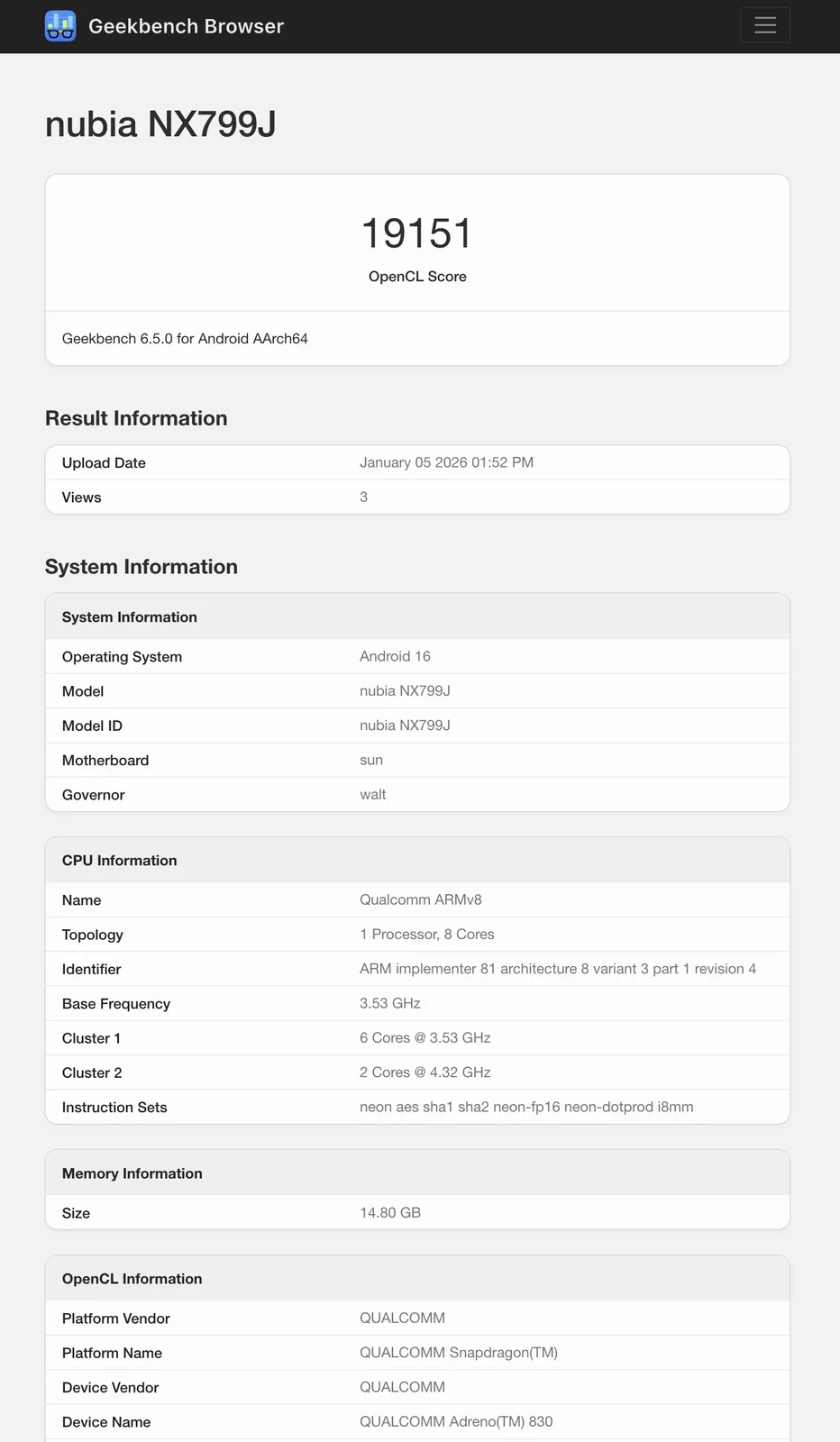 在 Geekbench 6.5 中,该芯片组在单核和多核基准测试中分别获得了 3,084 和 9,273 的中位数,以及 3,228 和 10,401 的最高分。虽然 RedMagic 11 Air 没有达到后者的水平,但其 9,934 分的多核成绩将使其跻身于以下产品的前 10 名之列 骁龙 8 精英-设备的前十名。同样,19,151 分的 OpenCL 得分也让 RedMagic 11 Air 逼近了 ROG Phone 9 Pro但落后于 RedMagic 10S Pro.