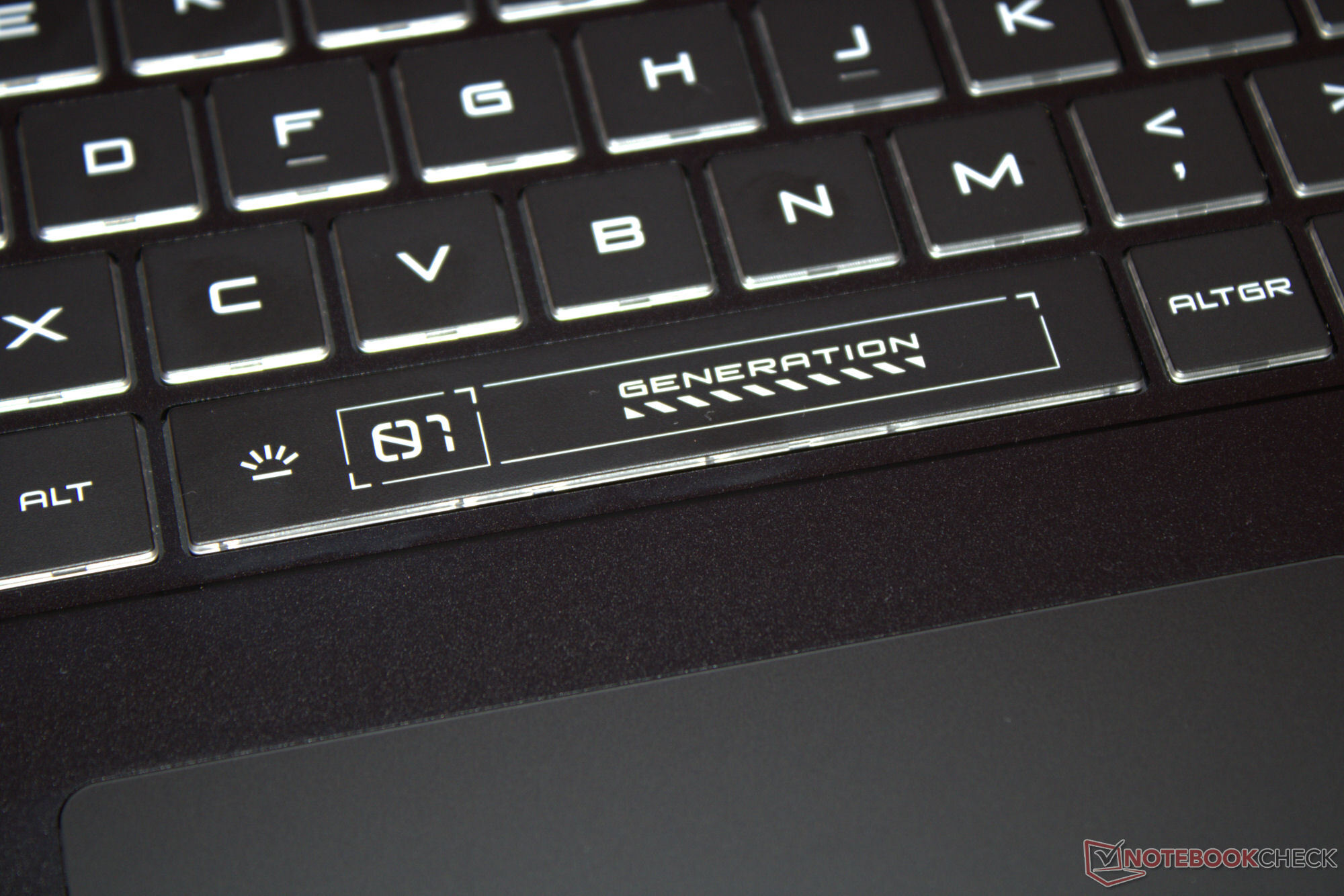 努比亚采用了包括数字键盘在内的 Chiclet 键盘。按键亮度均匀,键程较短,按压点清晰。在键盘上打字时,键盘不会屈服。一个积极的方面是它的偏置方向键是全尺寸的。它的 RGB 背光分为四个区域,我们的测试设备采用 QWERTY 键盘布局。我们不知道制造商是否提供本地化布局。