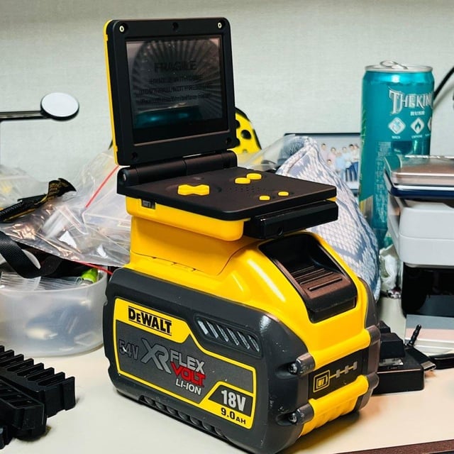 一个标准的 Game Boy Advance SP(目前在亚马逊上的售价约为 180 美元)的原装电池可使用约 10 个小时。对 Reddit 用户u/Bangooh 来说,这远远不够。他没有选择通常的锂离子电池升级,而是采取了一种更非传统的方法:使用额定容量为 162,000 mWh 的 DeWalt 电池组--在 3.6 伏电压下大约为 45,000 mAh。这种电池通常用于无绳电钻甚至割草机。