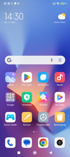 小米的永远在线显示屏能够显示诸如日期、时间、电池状态和背景图案等元素。然而,这并不是永久保持激活状态,而是在点击屏幕后显示10秒钟。智能手机可以通过集成在电源按钮上的指纹传感器进行一次生物识别解锁,该传感器工作可靠。通过自拍相机的2D面部识别传感器进行认证也同样快速,但安全性较低。