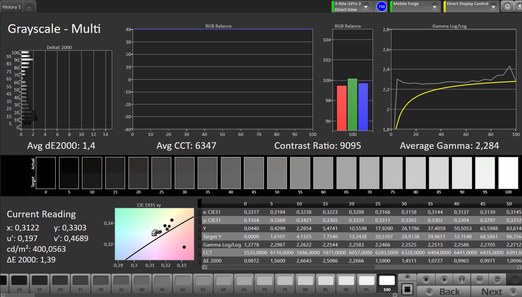 ΔE Greyscale Calman: 1.4 | ∀{0.09-98 Ø5}