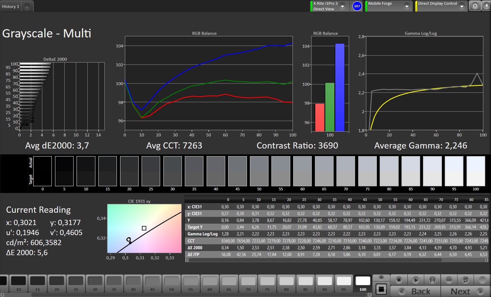 ΔE Greyscale Calman: 3.7 | ∀{0.09-98 Ø5}